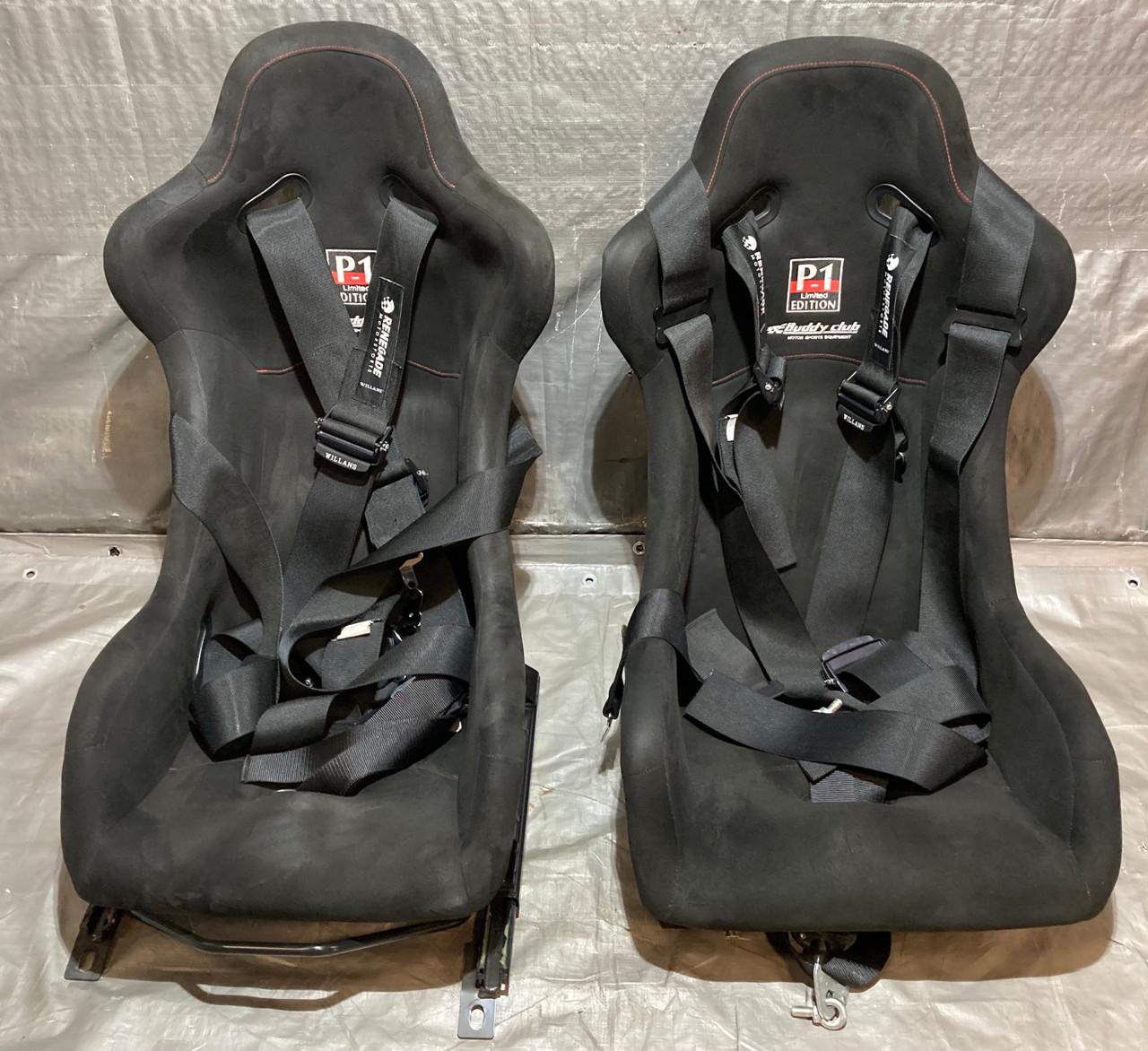 Pair of Buddy Club P1 Racing Bucket Seats w/ Renegade Willans 6pt Harnesses / Pair / USED