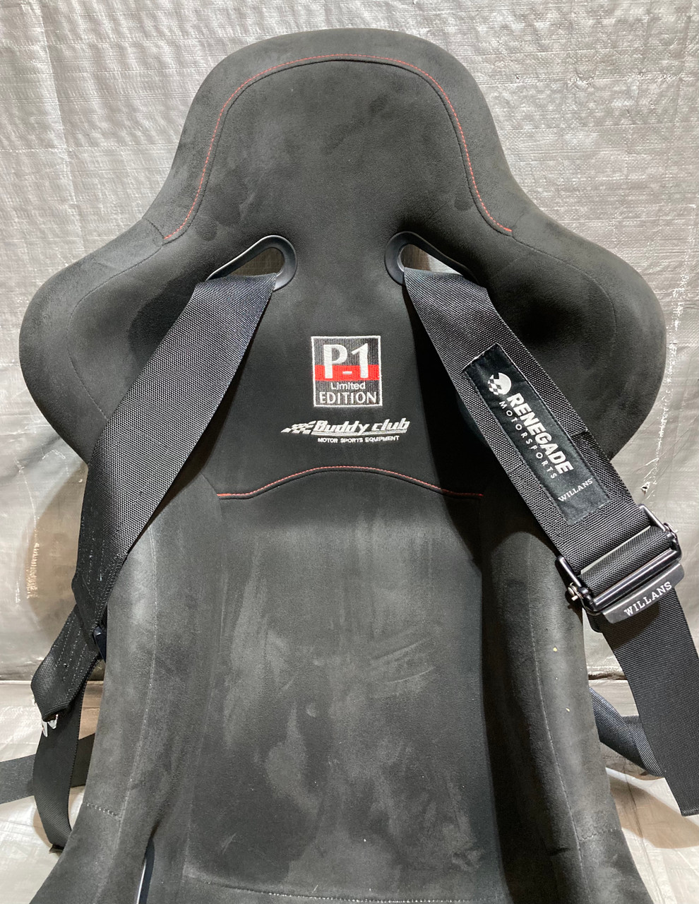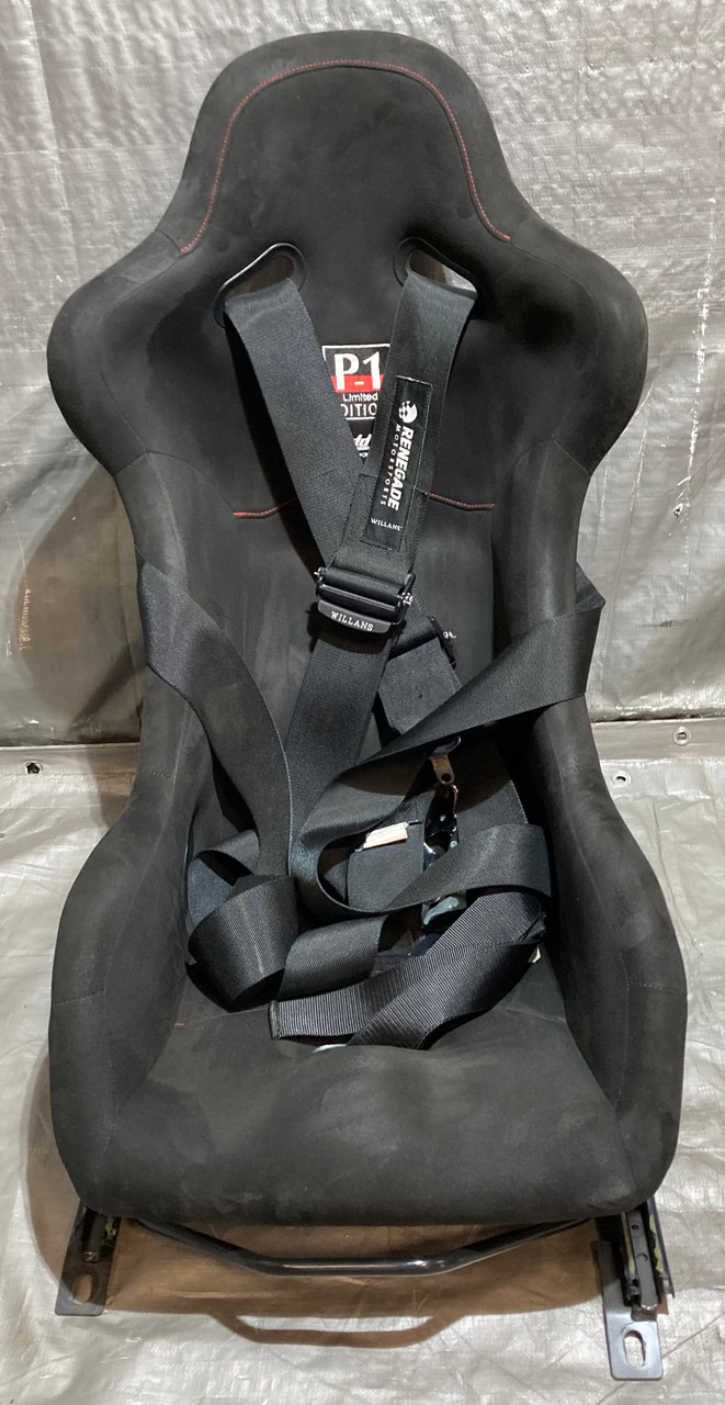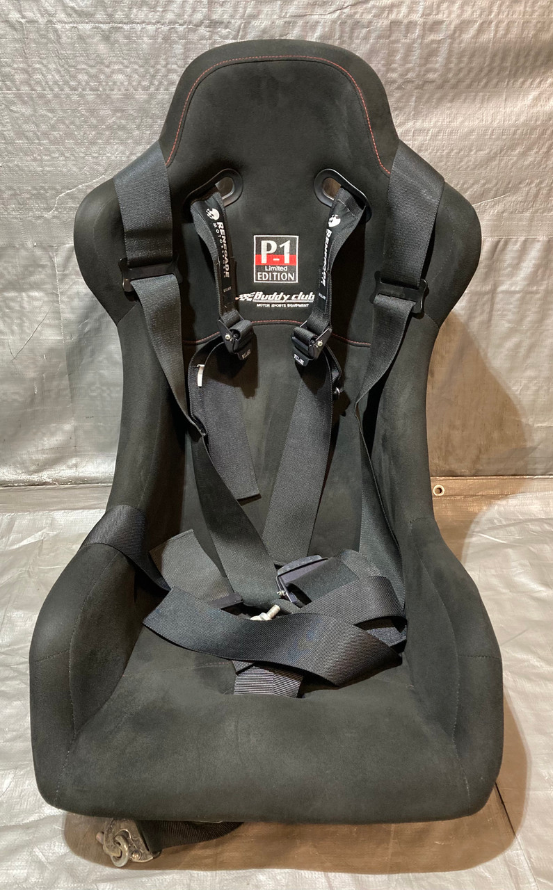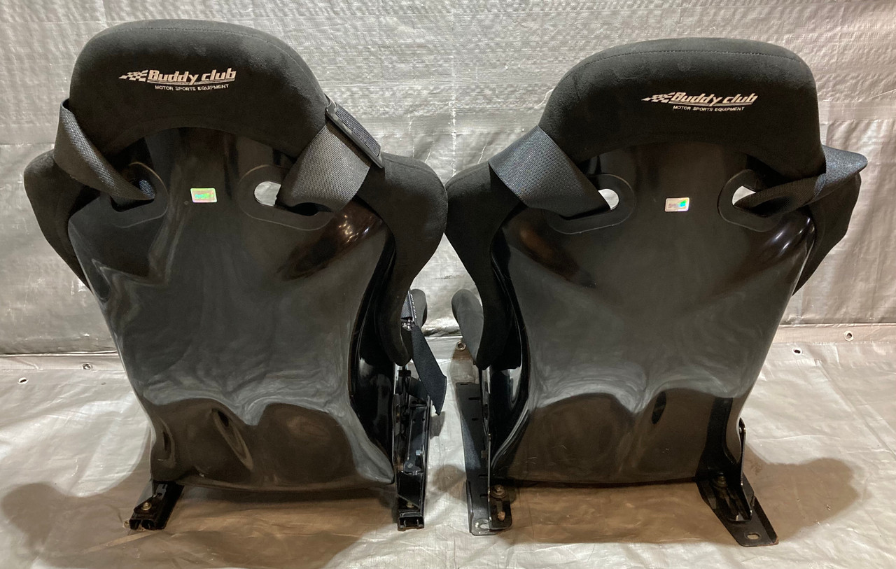 Includes the pair of aftermarket Buddy Club P1 Limited Racing Buckets Seats, Mounting brackets, passenger side seat slider, and Renegade motorsports Willans 6 point harnesses. The included seats are a size Large (passenger side) and side Medium (driver side). Seats are in good physical condition, have not been hit or damaged in any way. Free of any cracks in the material. Black suede is free of any rips or tears, however there is some small spots / holes in the shoulder, as shown. Stitching is fully intact. The included harnesses are still within the approved safety date range and will not expire until 2027. In good physical condition with no major fraying in the belts. Includes everything as shown in the photos. Installation may require additional modifications or components specific to your intended application.