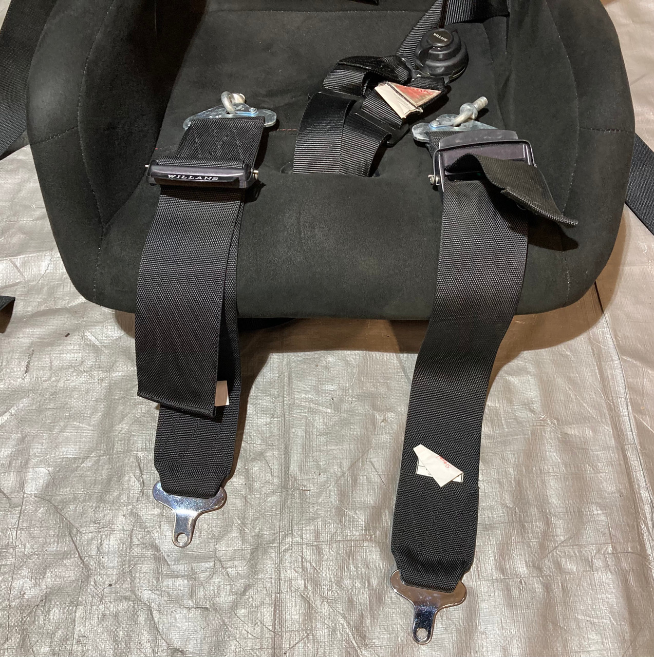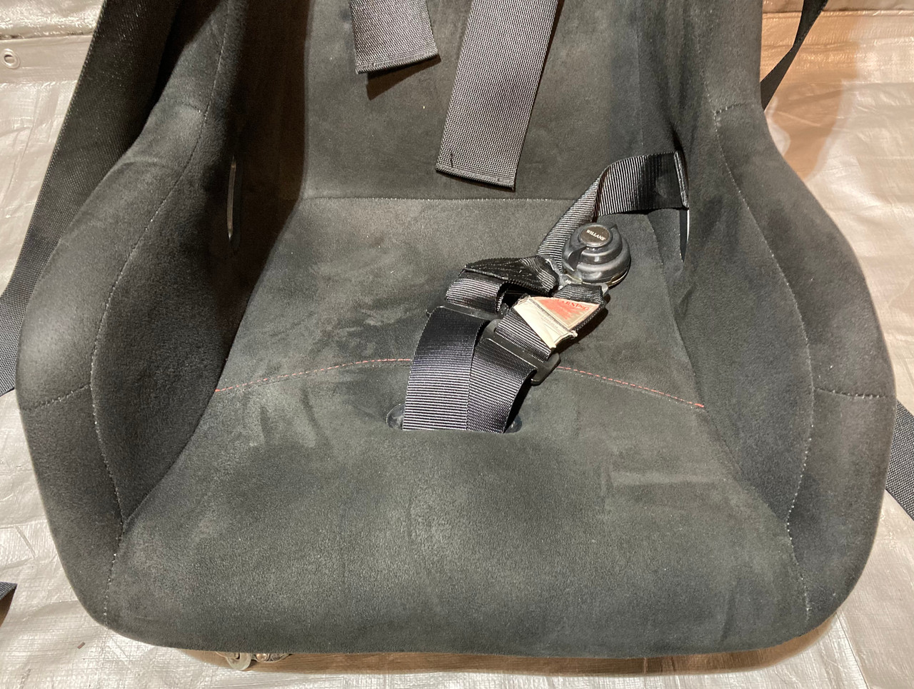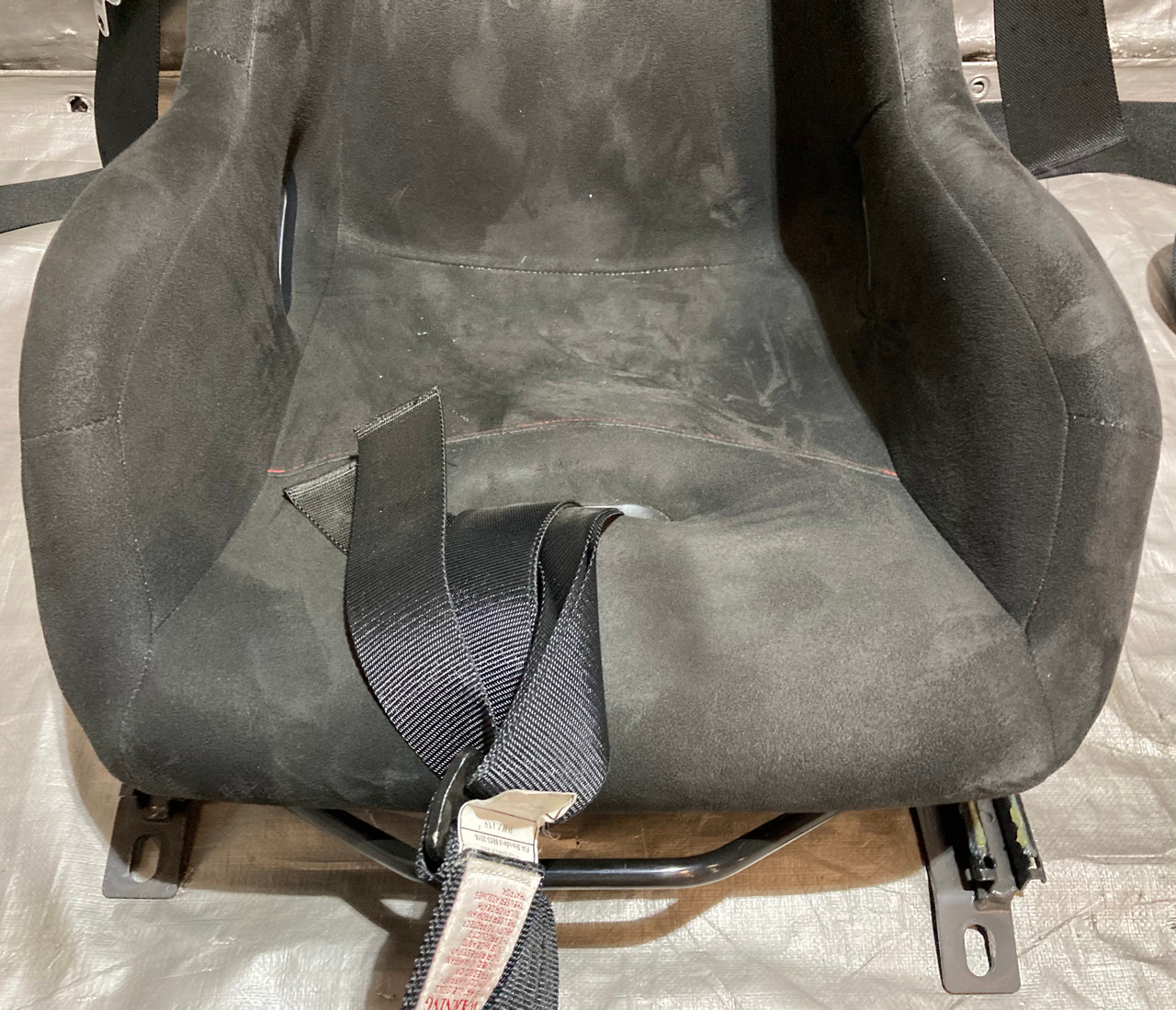 Includes the pair of aftermarket Buddy Club P1 Limited Racing Buckets Seats, Mounting brackets, passenger side seat slider, and Renegade motorsports Willans 6 point harnesses. The included seats are a size Large (passenger side) and side Medium (driver side). Seats are in good physical condition, have not been hit or damaged in any way. Free of any cracks in the material. Black suede is free of any rips or tears, however there is some small spots / holes in the shoulder, as shown. Stitching is fully intact. The included harnesses are still within the approved safety date range and will not expire until 2027. In good physical condition with no major fraying in the belts. Includes everything as shown in the photos. Installation may require additional modifications or components specific to your intended application.